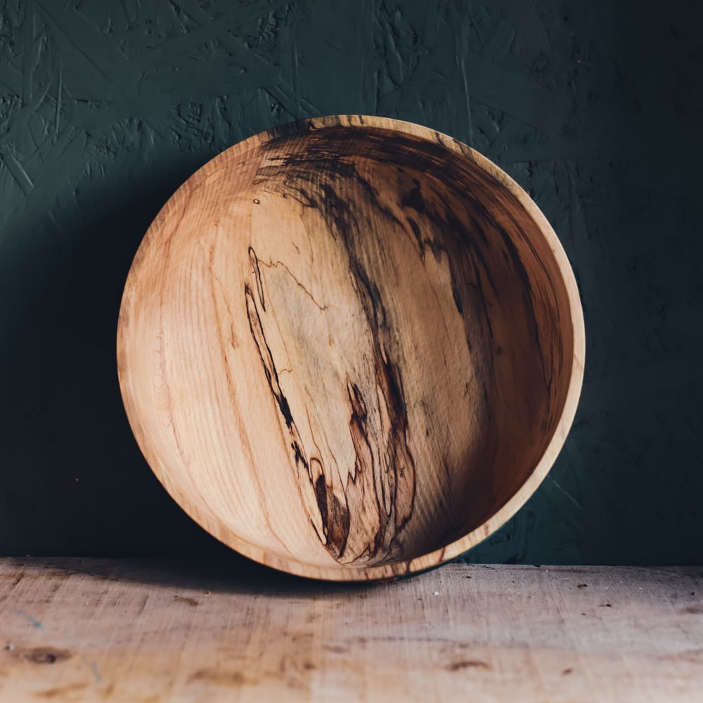 Inside, the beech carries its own patterning with warm, natural movement. The form holds a steady presence, with the carved rim giving the bowl a sense of landscape shaped over time. This piece keeps a thread back to the moors, to ancient workings and to the way water once revealed the metal lying just beneath the surface.