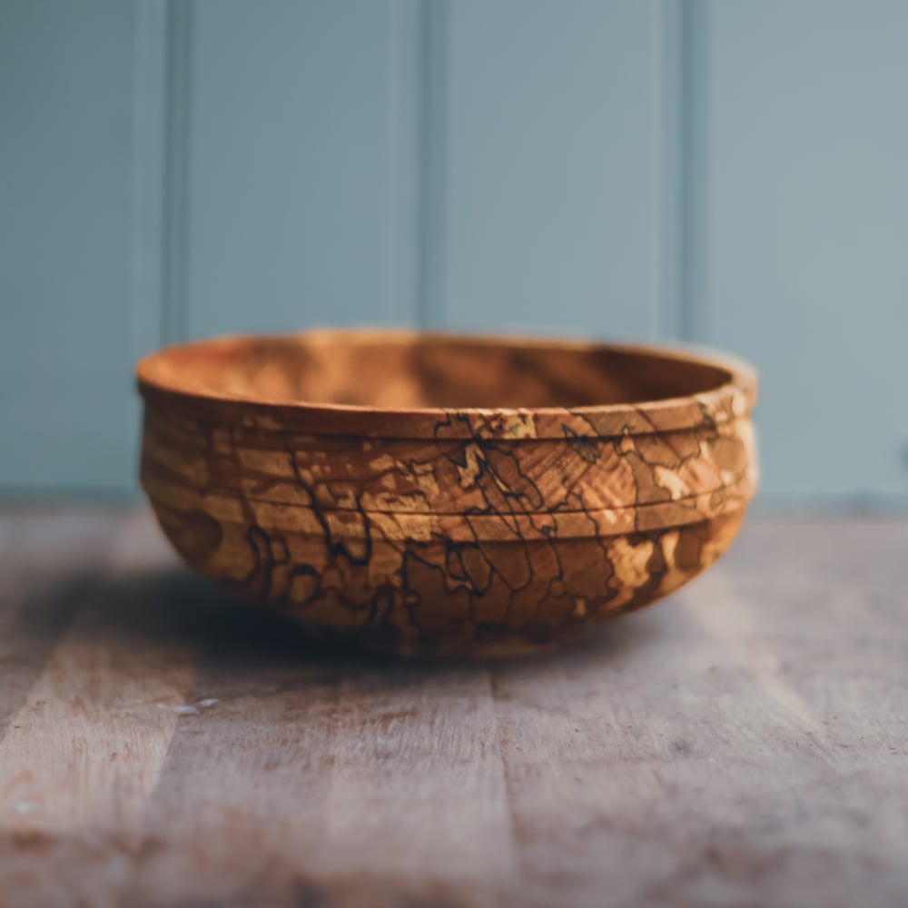 This Pentire Bowl is turned from spalted beech, where the natural lines and patterns formed in the wood create a distinctive surface across the whole piece. Each bowl has its own markings, shaped by the way the tree grew and changed over time, giving every one a unique character.