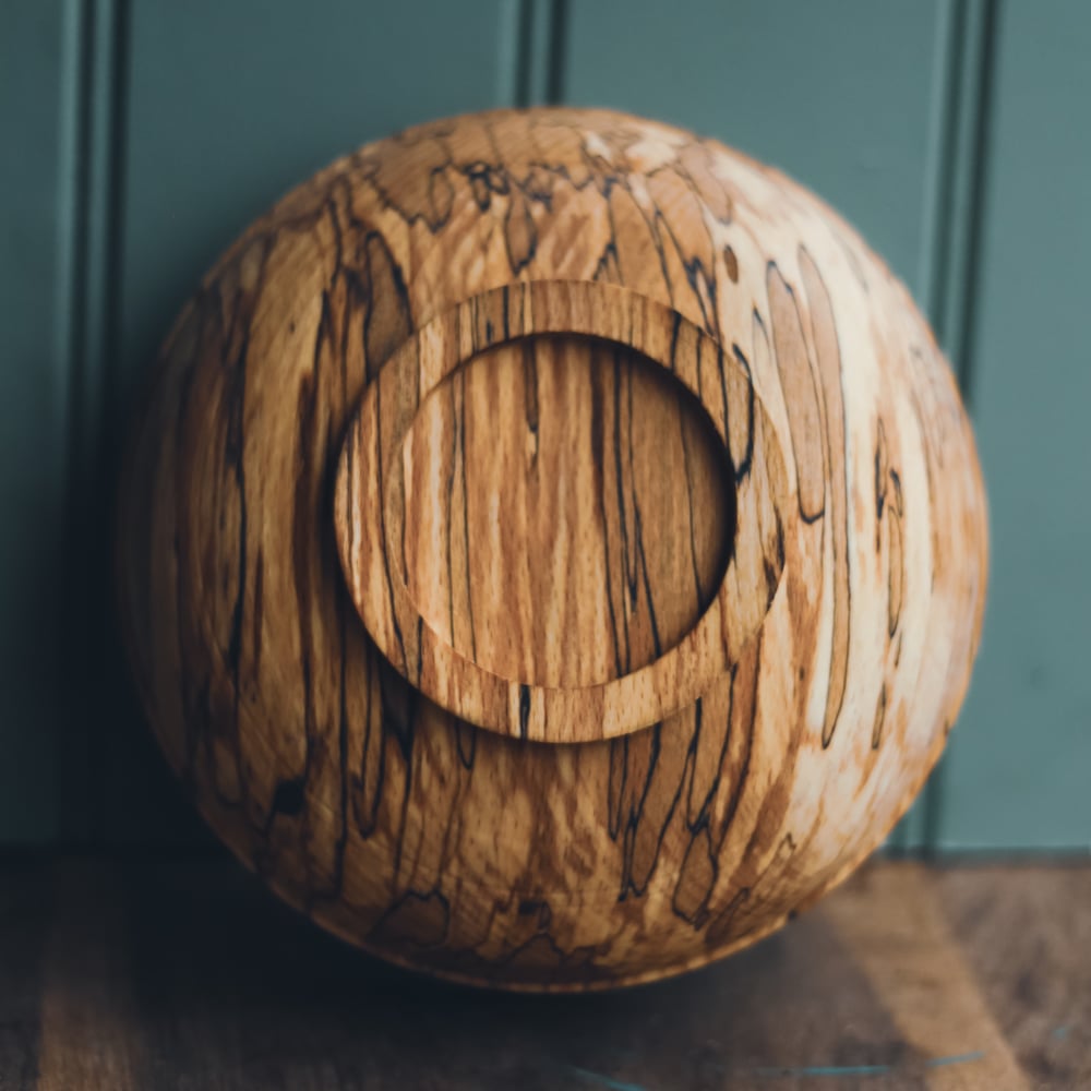 The Pentire design keeps to a simple, comfortable shape that sits well in the hands and on the table. In this natural version, the warm tones and shifting lines of the spalted wood become the focus of the piece.